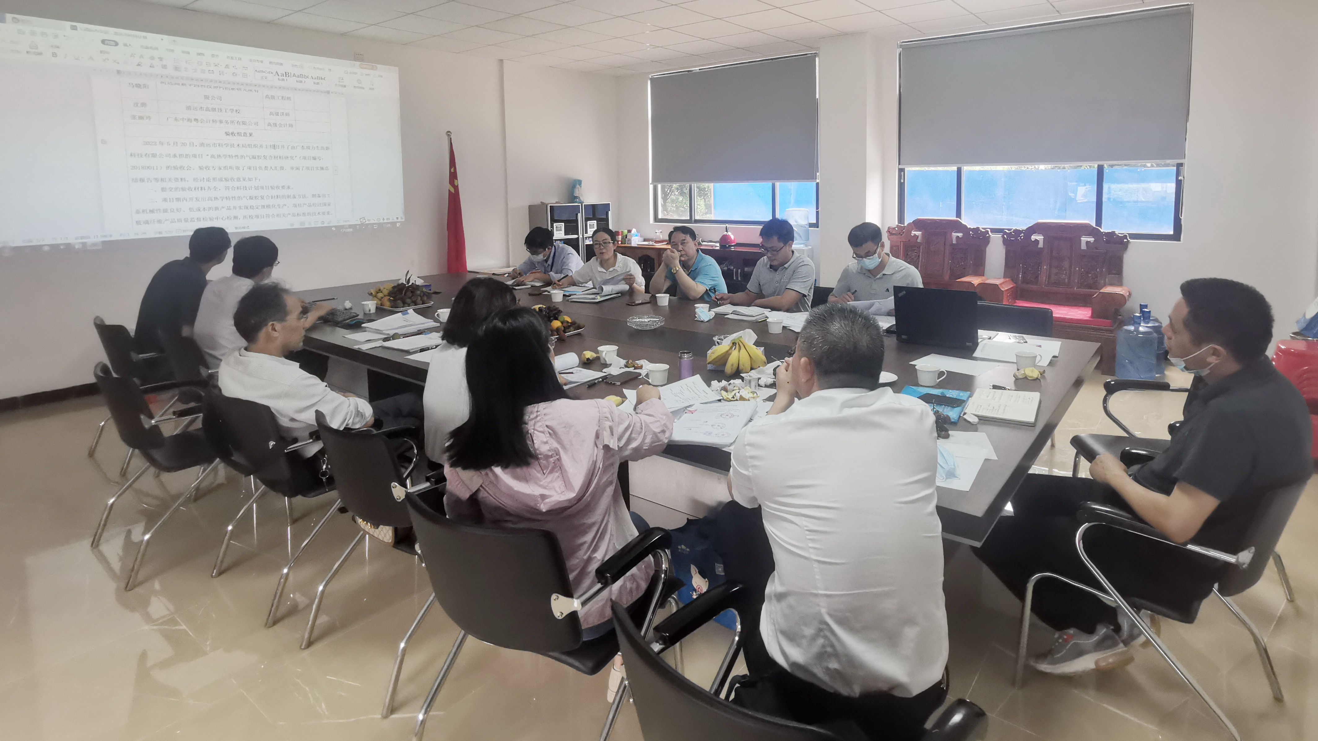 5月20日,清遠市科技局組織專(zhuān)家組到埃力生對2個(gè)科技項目進(jìn)行完工驗收,由廣東埃力生高新科技有限公司獨立承擔的科技項目(工業(yè)高新技術(shù)領(lǐng)域技術(shù)攻關(guān))《高熱學(xué)特性的氣凝膠復合材料研究》和科技項目(科技成果轉化-重大科技專(zhuān)項)《基于國標節能納米氣凝膠絕熱復合材料成果轉化項目》順利通過(guò)驗收。