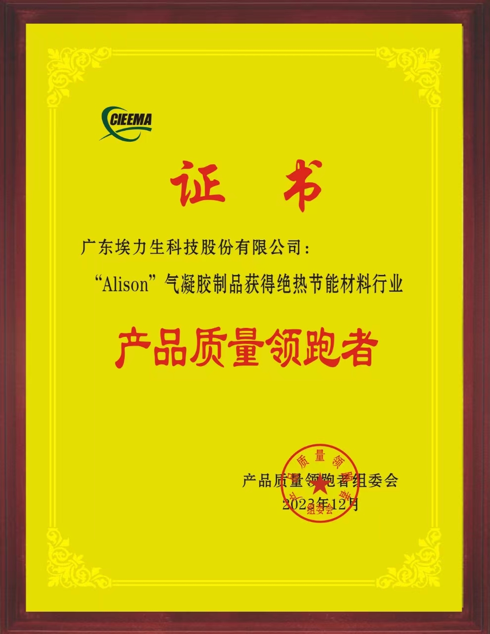 埃力生氣凝膠制品被評為2023年度絕熱節能材料行業(yè)“產(chǎn)品質(zhì)量領(lǐng)跑者”品牌產(chǎn)品,這是埃力生第三次獲得該獎項。