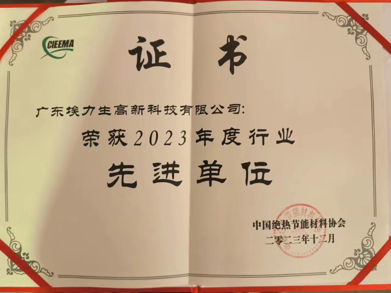 埃力生獲協(xié)會(huì )頒發(fā)2023年度行業(yè)“先進(jìn)單位”證書(shū)。