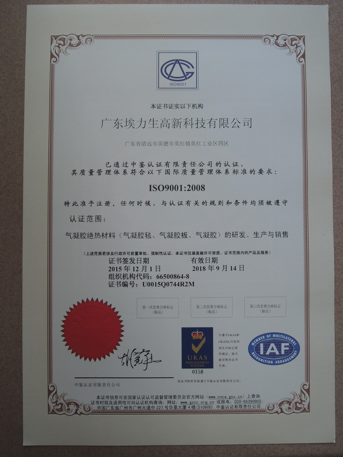編制廣東省地方標準《氣凝膠絕熱材料》