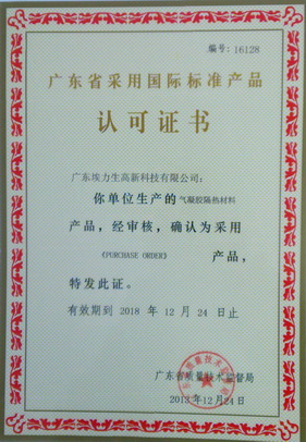 獲得“廣東省采用國際標準產(chǎn)品認可證書(shū)”